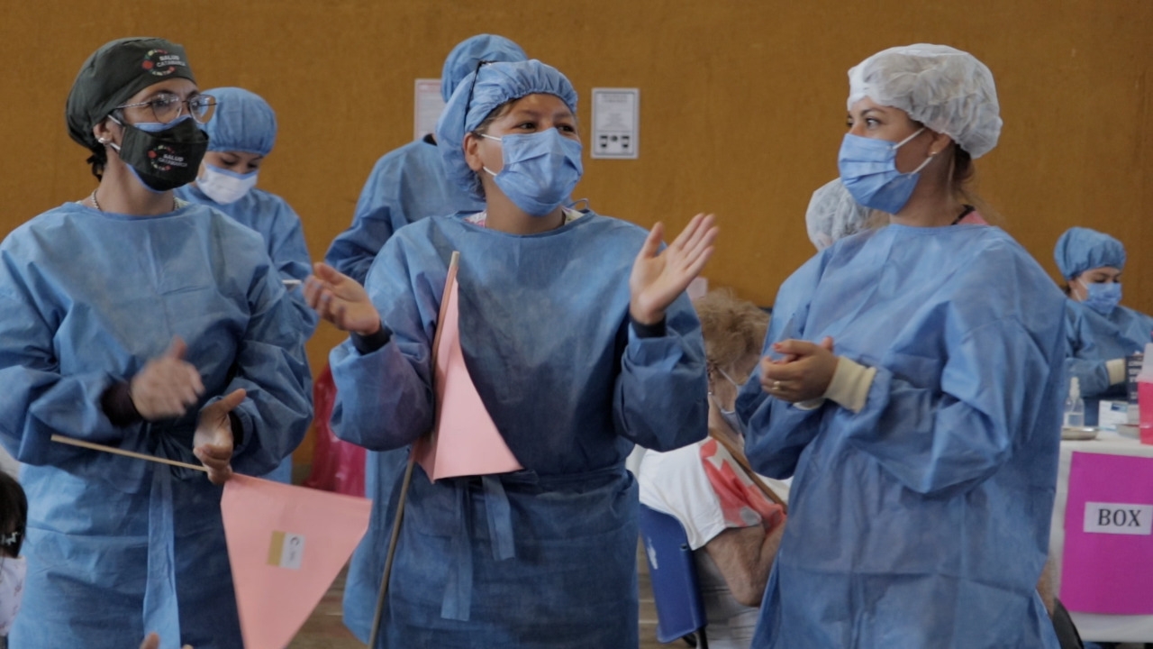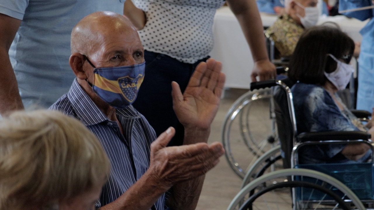 La música fue el lenguaje que permitió unir a los artistas con las personas que esperaban su turno para vacunarse, en un mensaje esperanzador y emotivo.