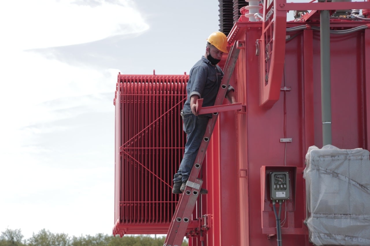 Como parte del proyecto, se montó uno de los equipos electromecánicos más importantes que conformarán la ET de Las Cañas, ubicada en el departamento Santa Rosa. Se trata de un Transformador de Alta Tensión de 132 kv con una potencia de 30 MVA, de un valor 35 millones de pesos.