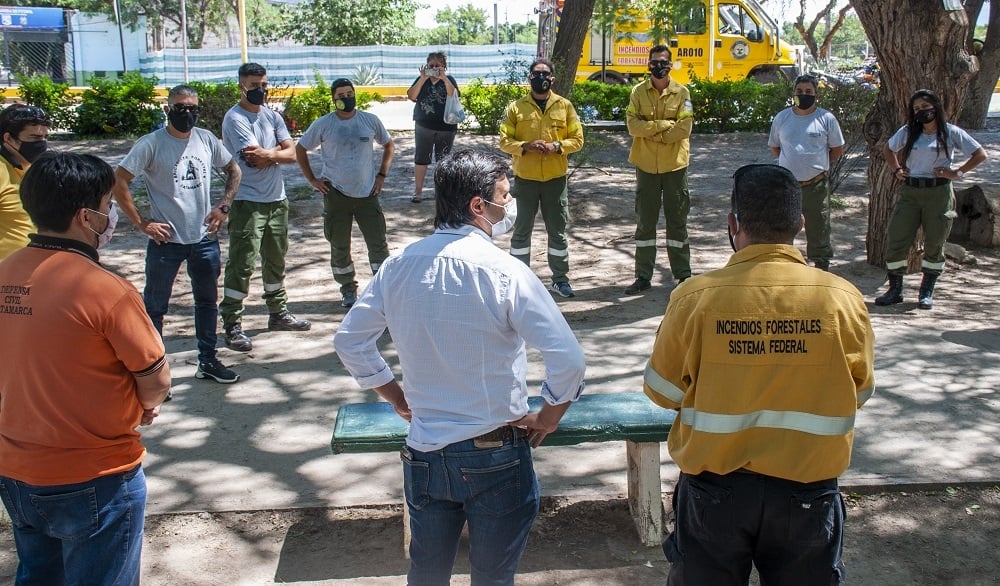 El pedido de los combatientes catamarqueños fue realizado por el Servicio Nacional de Manejo del Fuego a través de su coordinación regional del NOA, dirigida por el Técnico Jujeño Lautaro Vázquez, al Gobierno de Catamarca, por lo que el Ministro de Seguridad, Gustavo Aguirre puso a disposición el recurso humano de la Dirección de la Brigada y todo lo necesario para que los combatientes cuenten con todo lo necesario.