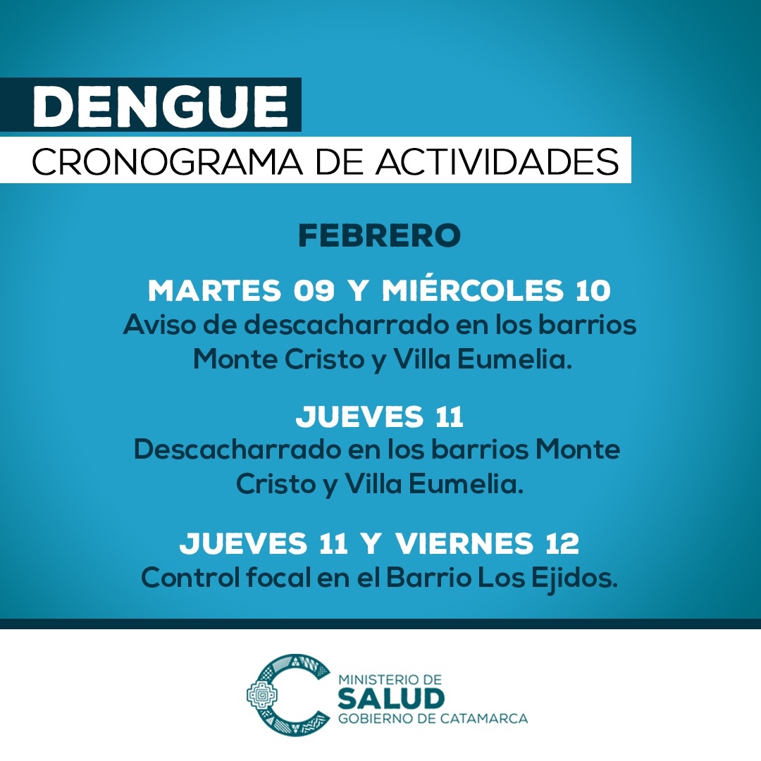 - Jueves 11: descacharrado en los barrios Montecristo y Villa Eumelia.