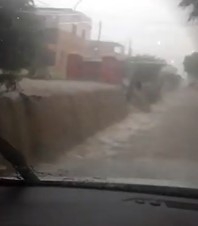 Las imágenes tomadas por quien transitaba por el lugar en el peor momento del diluvio, muestran cómo la avenida Mariano Moreno se llenó de agua, a tal punto de parecer unas verdaderas cataratas.