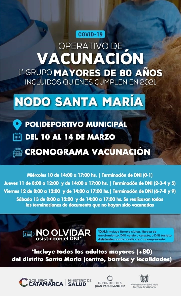 La vacunación incluye a todos los adultos mayores (+80) del distrito Santa María (centro, barrios y localidades).