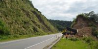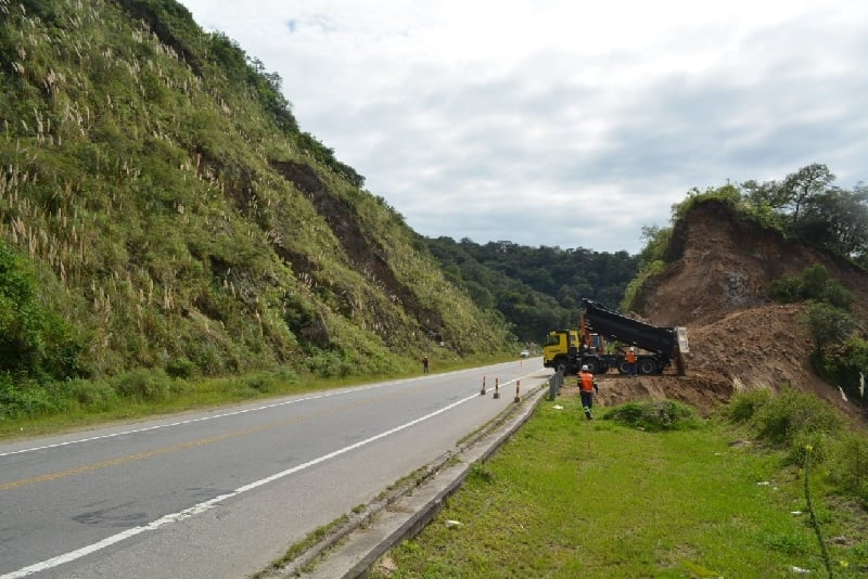 El tránsito es dirigido por media calzada con auxilio de banderilleros. Disminuir la velocidad habitual.