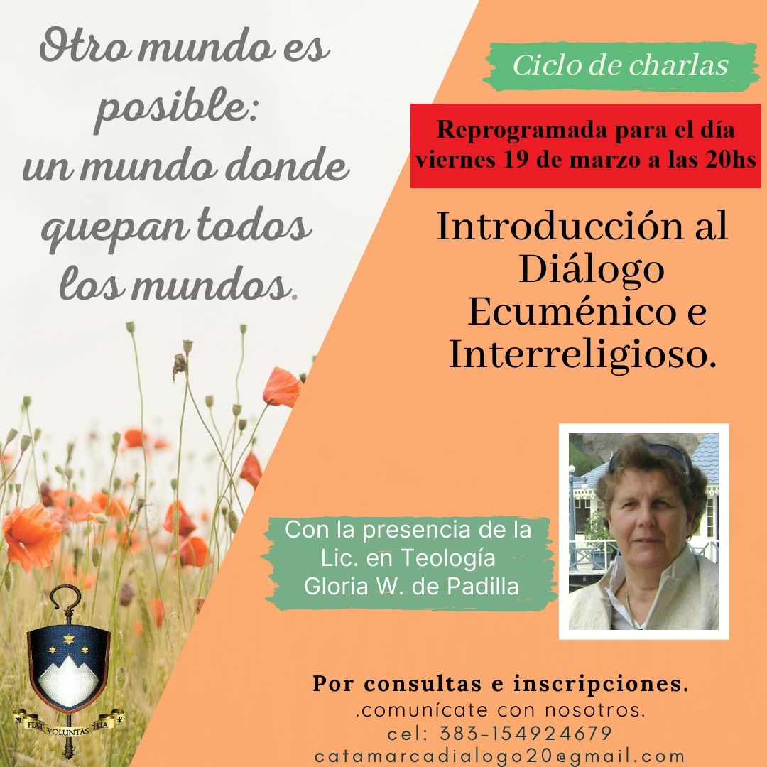 En la oportunidad, se contará con la presencia de la Lic. en Teología Gloria W. de Padilla, quien abordará “Introducción al Diálogo Ecuménico e Interreligioso.