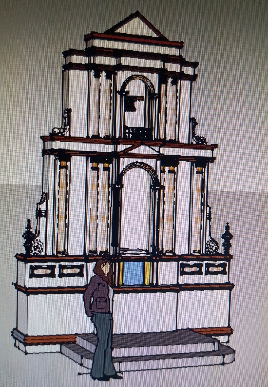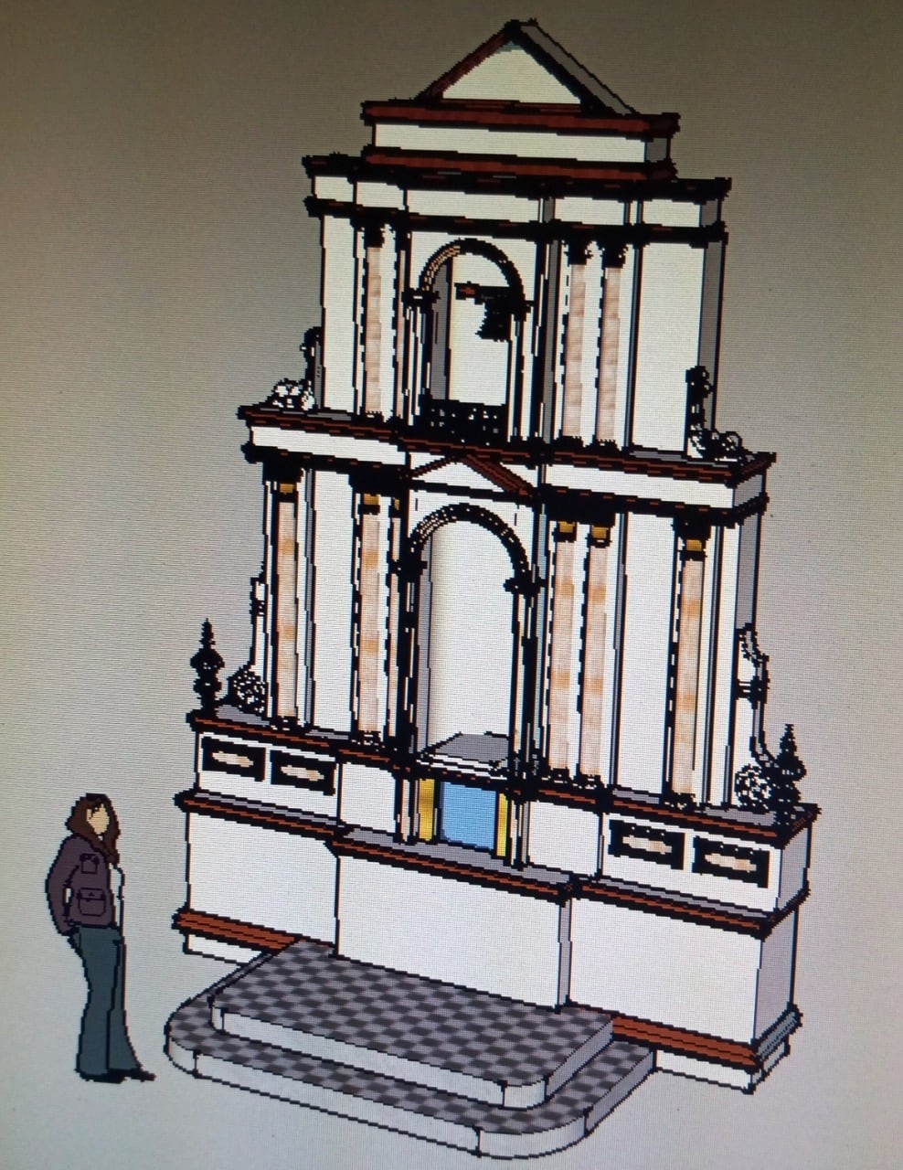 “El retablo se materializa con una construcción tradicional de mampostería de ladrillos y estructura de hormigón armado, con detalles ornamentales en yeso y herrería de hierro”, explicó la responsable del proyecto y la dirección de la obra, cuyo avance es de un 30%, habiendo finalizado la ejecución de la parte gruesa en febrero 2021. Está previsto que los trabajos se retomen el lunes 22 de marzo.