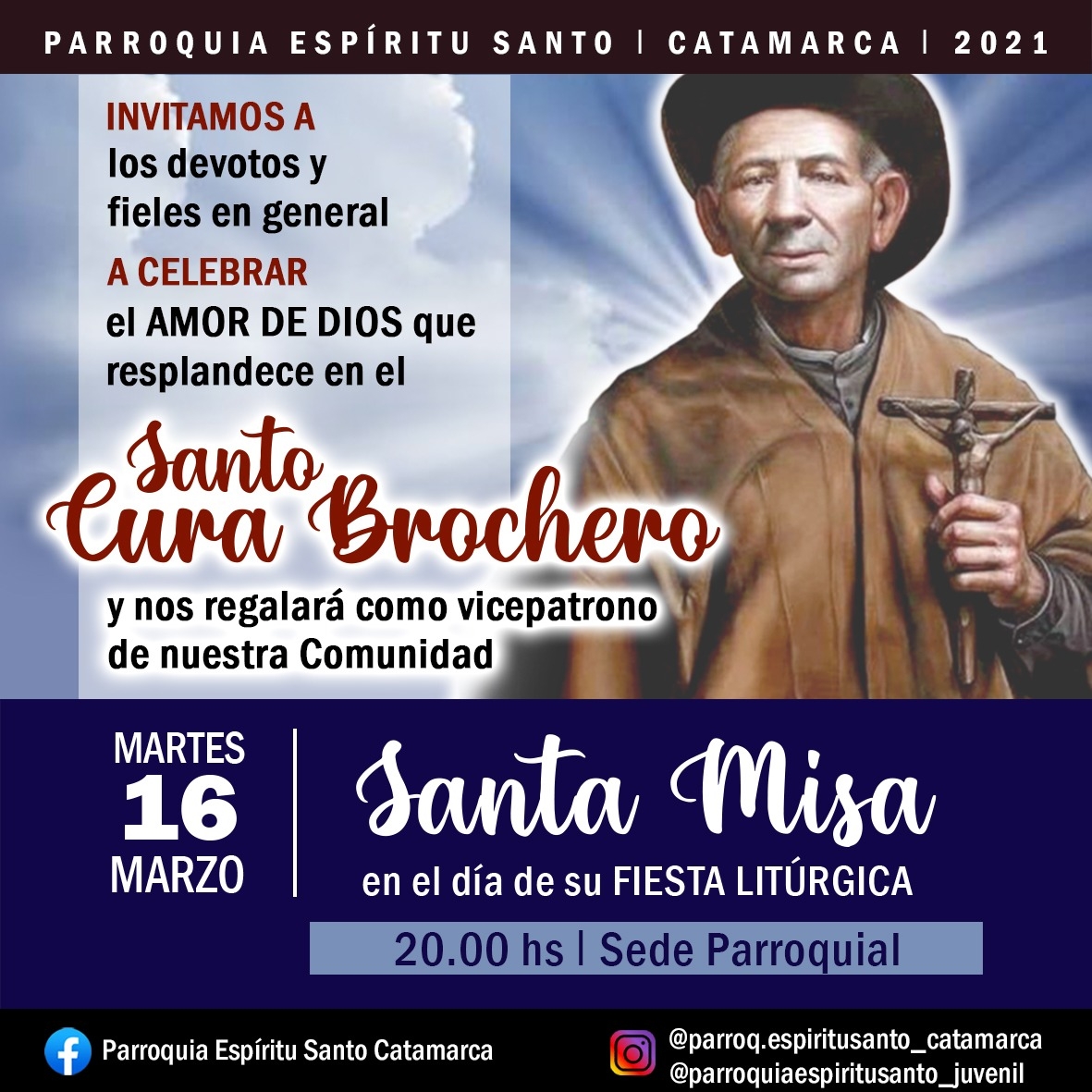 La parroquia Espíritu Santo invita a los devotos y fieles en general a participar de la Santa Misa en honor de su Vice Patrono, el Santo Cura Brochero.