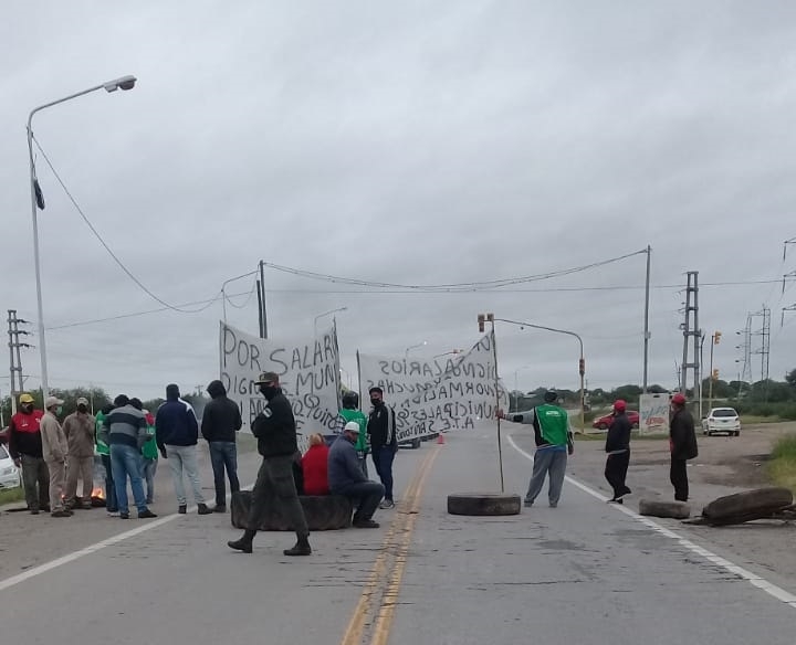 Sin respuestas, los empleados de la Municipalidad de Icaño, nuevamente se encuentran cortando Ruta Nacional N°157, en el acceso norte a San Antonio de La Paz. Dejan pasar los vehículos cada media hora.