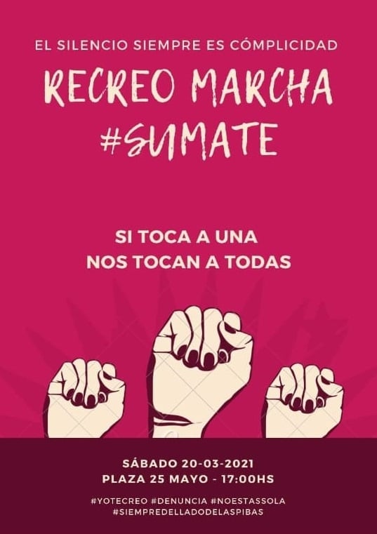 La marcha se llevará a cabo este sábado 20, a partir de las 17 horas, para pedir a la Justicia que “les otorguen condenas ejemplares a los violadores". Además, "para brindar apoyo a las víctimas, que sepan que cuentan con nosotros", expresaron desde la agrupación.