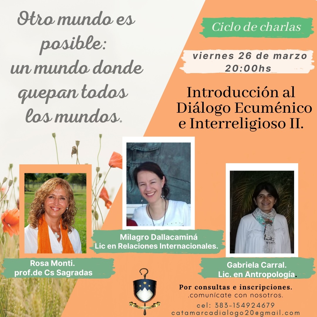 En esta oportunidad se contará con la presencia de Rosa Monti, Prof. de Ciencias Sagradas; Milagro Dallacaminá, Lic. en Relaciones Internacionales; y Gabriela Carral, Lic. en Antropología.