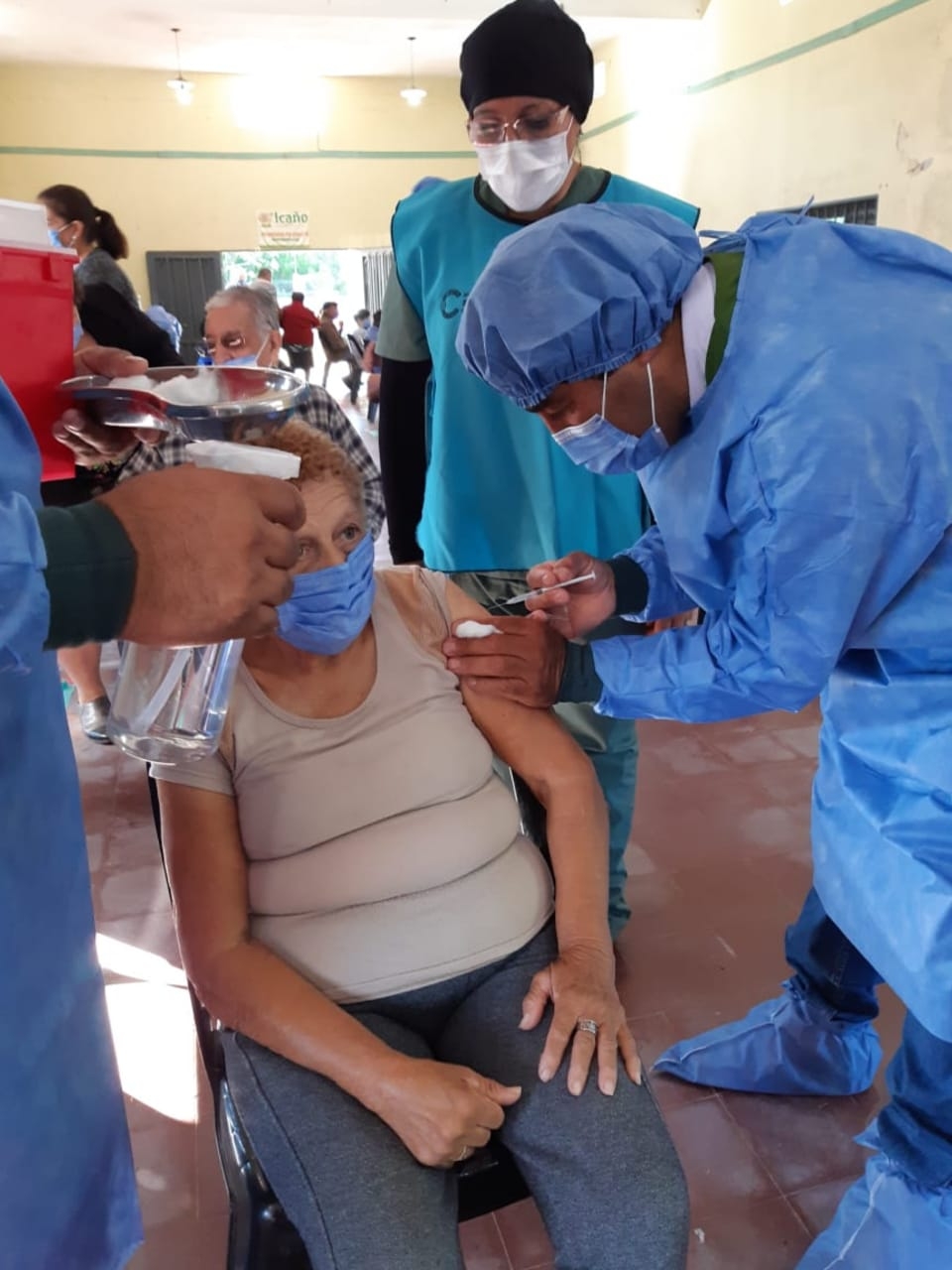 Personal del Ministerio de Salud de la provincia, encabezados por Lic. Robert, en forma conjunta con directivos y personal del Área Programática N°7, Dr. Jorge Montá, y la Municipalidad de Icaño, llevan a cabo desde las 8 de la mañana de este martes, el operativo de vacunación de la primera dosis para mayores de 80 años y personal de Salud rezagado.