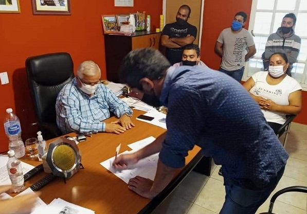 Estos operarios se encargarán de realizar trabajos de conservación de rutina sobre las rutas nacionales de los tramos que comprenden nuestra jurisdicción y esta mañana firmaron su contrato en el despacho del Intendente José Pío Carletta en Icaño.