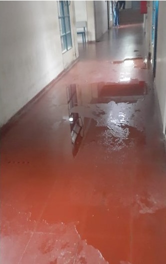 Y otra vez, el agua que cayó –que no es mucha- fue suficiente para que se produzcan las clásicas filtraciones y pasillos mojados en el nosocomio.