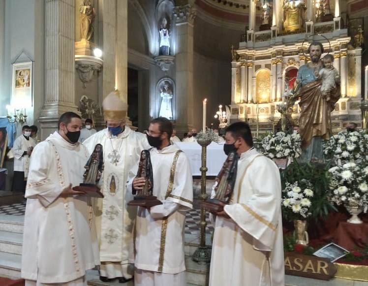 Los acólitos catamarqueños fueron ordenados Diáconos a los pies de Nuestra Madre del Valle y San José, acompañados de sus familiares y amigos, fieles en general que participaron de manera presencial y muchos que siguieron la ceremonia desde sus hogares a través de las redes sociales de la Catedral y del Obispado.