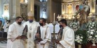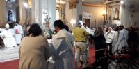 Ya revestidos, los flamantes diáconos pasaron a ocupar su lugar en el presbiterio donde recibieron la bienvenida de los diáconos permanentes de la Diócesis y los sacerdotes catamarqueños y en el momento de la Comunión, dieron la Eucaristía a los fieles.