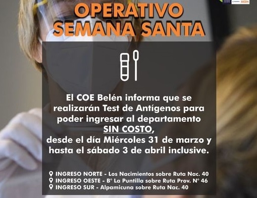 Los controles se realizarán en Ingreso Norte (Los Nacimientos sobre Ruta Nacional N°40); Ingreso Oeste (B° La Puntilla sobre Ruta Provincial N°46); Ingreso Sur (Alpamicuna sobre Ruta Nacional N°40).