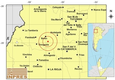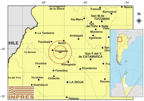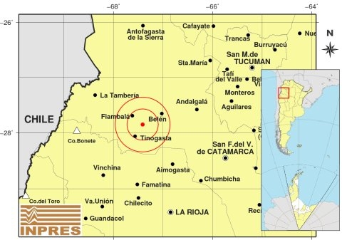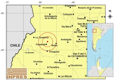 Epicentro: 177 km al O de San F. Del Valle De Catamarca; 182 km al N de La Rioja; 26 km al SE de Fiambalá -27.850 (lat) -67.411 (long)