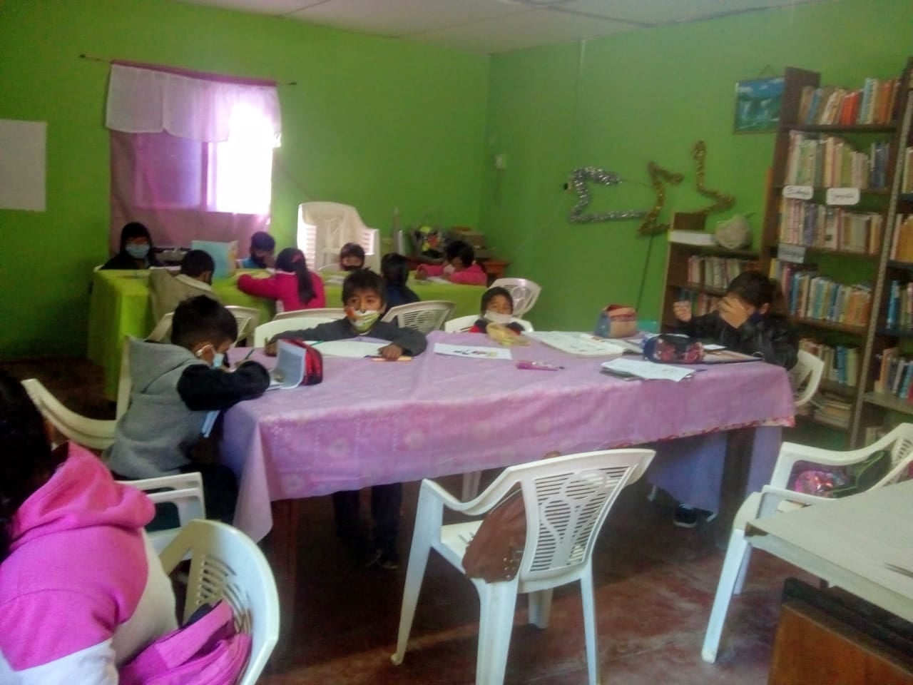 Laura Marcial, Rocío Ayuza y Judith Mamani brindan clases de apoyo a niños y jóvenes de Palo Seco, de lunes a viernes de 8 a 12 horas en la Biblioteca.