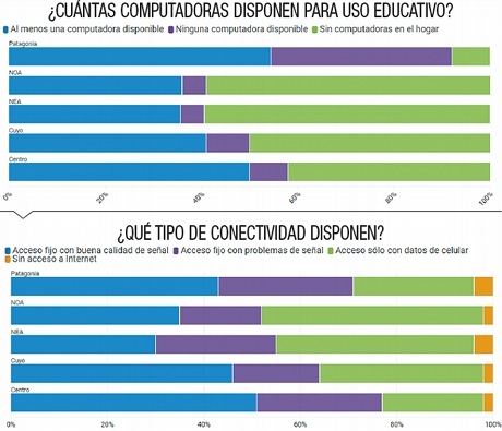 En este contexto, la Encuesta Permanente de Hogares del Ministerio de Educación sobre la conectividad en las diferentes regiones del país arrojó números poco apreciables en el Norte Grande (NEA-NOA).