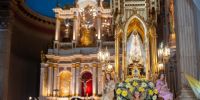 A las 18.00, el Rector del Santuario y Catedral Basílica tomó en sus brazos a la Imagen cuatro veces centenaria para trasladarla desde el Camarín hasta el Presbiterio, acompañado por un puñado de sacerdotes del clero local y los diáconos recientemente ordenados.