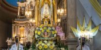 Luego fue colocada por el Rector en el Trono festivo, adornado con flores blancas y amarillas, desde donde presidirá las celebraciones litúrgicas durante el Septenario en su honor.