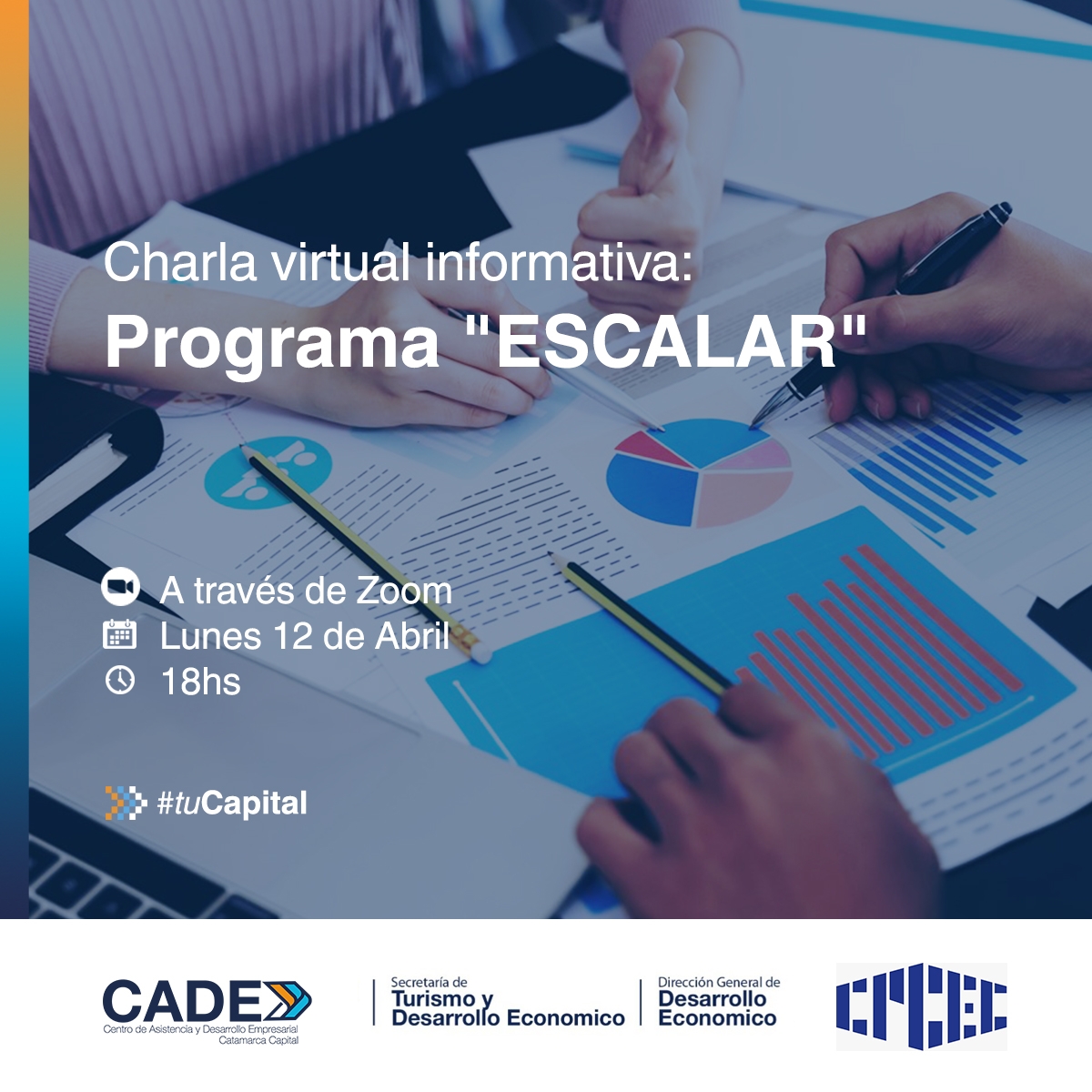 La charla está a cargo del equipo técnico del Centro de Asistencia y Desarrollo Empresarial de la Dirección General de Desarrollo Económico de la Municipalidad Catamarca Capital. El enlace se enviará el día de la charla, a través del Consejo Profesional de Ciencias Económicas.