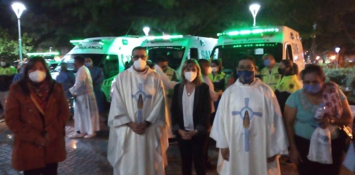 En este momento difícil por la pandemia, durante la noche del lunes 12 de abril, día en que se celebró el 130° aniversario de la Coronación Pontificia de la Imagen de la Virgen del Valle, rindió su homenaje el ámbito de la Salud estatal y privado: sanatorios, hospitales, Maternidad, Círculo Médico, farmacéuticos, odontólogos, kinesiólogos, anestesistas, psicólogos, bioquímicos, la Obra Social de los Empleados Públicos (OSEP), geriátricos; SAME, ECA, EMI y COE Provincia; ONG Corazón con Agujeritos y Soles; Pastoral de la Salud y Pastoral de las Adicciones.
