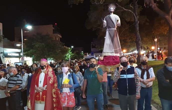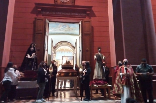 La manifestación pública de fe fue presidida por el Obispo Diocesano, Mons. Luis Urbanc, con la participación de los fieles, quienes portaron las imágenes del Cristo Yacente, la Virgen Dolorosa y San Juan a lo largo del recorrido.