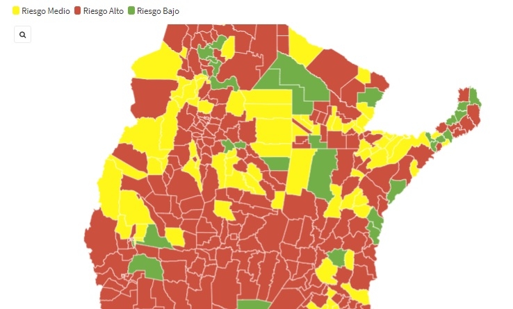 Un informe previo difundido el 6 de abril pasado relevaba un aumento de 48 a 85 en la cantidad de departamentos en "alto riesgo" epidemiológico de todo el país en una semana, número que ahora creció a 159 departamentos.