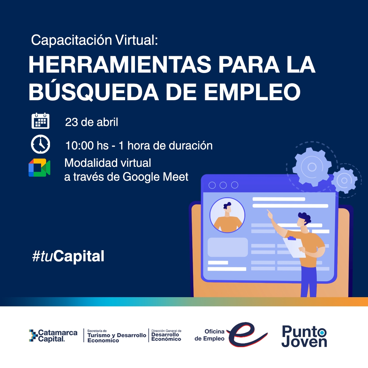 Esta capacitación está organizada por la Oficina de Empleo Catamarca Capital, perteneciente a la Dirección General de Desarrollo Económico Catamarca Capital; junto a Punto Joven perteneciente a Políticas Juveniles de Catamarca Capital.