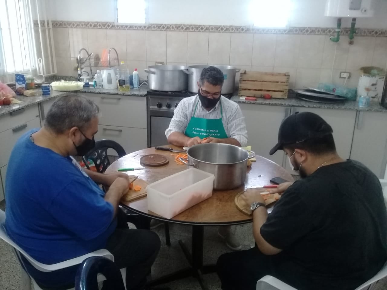 El día previo a este primer aniversario, los Cocineros de María prepararon 200 porciones de guiso de fideos para los hermanos necesitados.