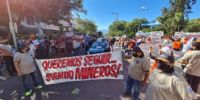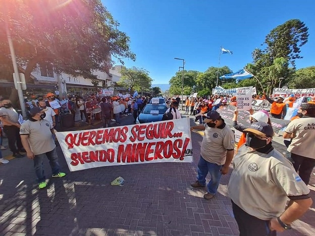 Con una importante participación de trabajadores mineros, la concentración fue en la Plaza 25 de Agosto, para luego dirigirse a Plaza 25 Mayo, donde hicieron escuchar su posición en defensa de sus fuentes laborales.