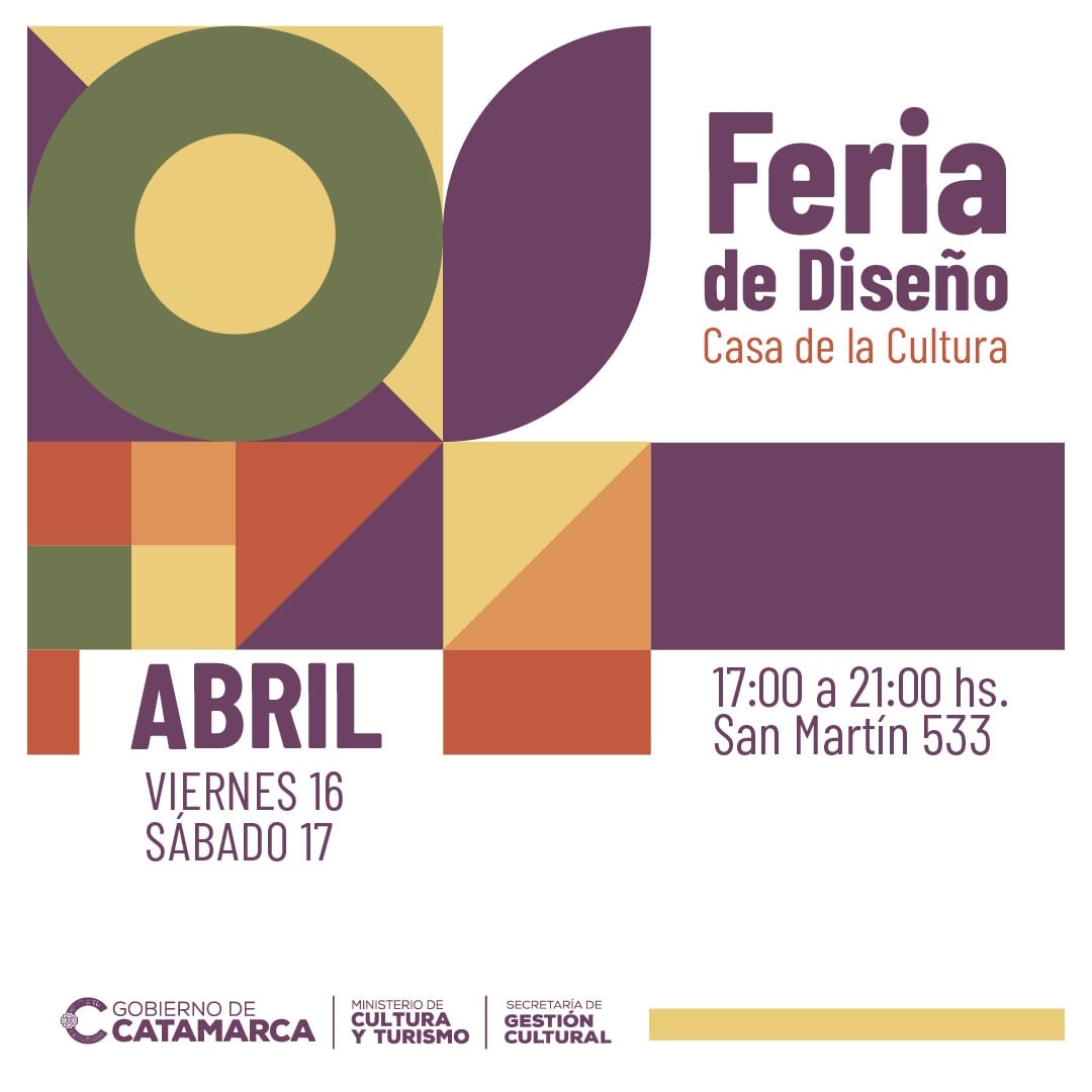 La 4º edición de la Feria de Diseño está programada para los días viernes 16 y sábado 17 de abril, de 17 a 21 hs, en la Casa de la Cultura de Catamarca (San Martín 533), con todos los protocolos previstos según la emergencia sanitaria vigente, y siempre sujeta a la evolución de la situación epidemiológica en la provincia y la ciudad.