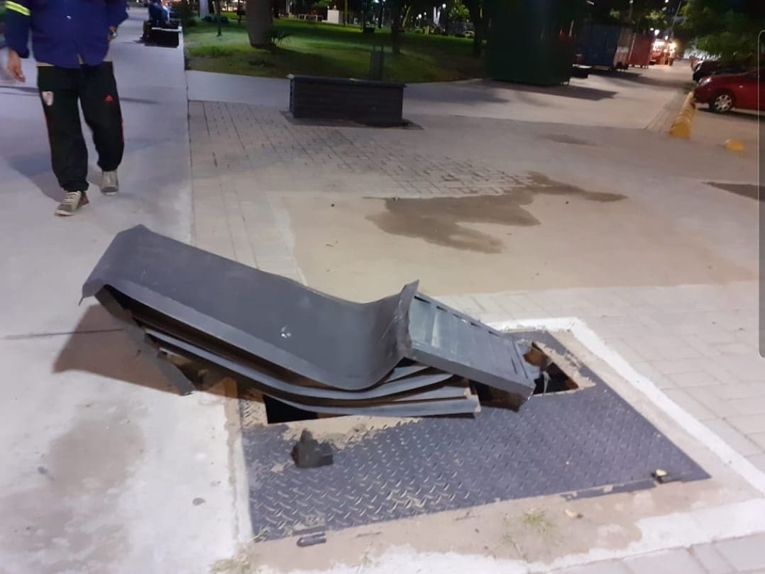 No se sabe cómo, porque no hay testigos, la ventilación que también es la puerta de ingreso a las instalaciones subterráneas anoche quedó aplastada.