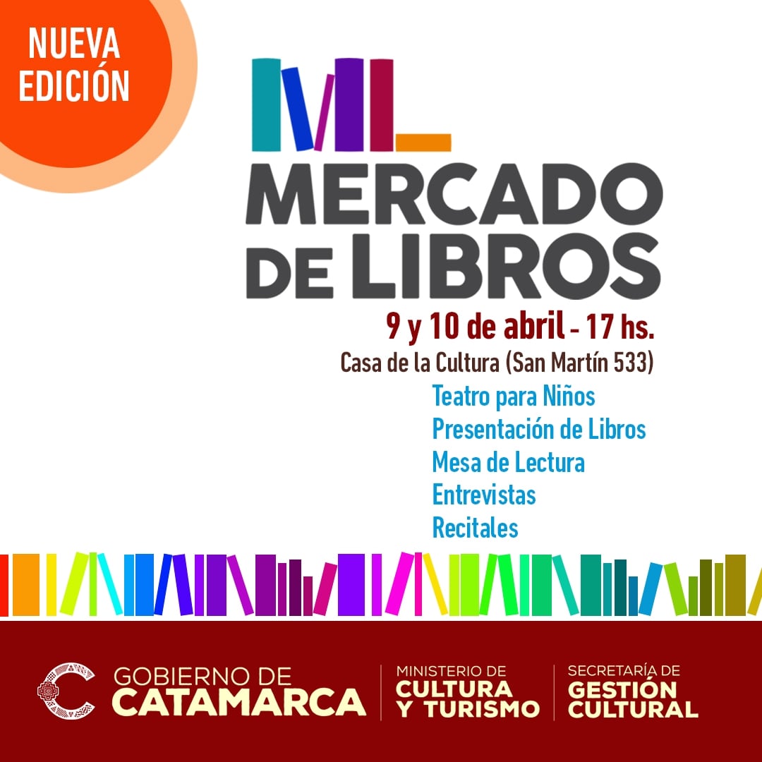 Venta de libros nuevos y usados, de autores de Catamarca y de otras latitudes, una exposición con clásicos de la literatura infanto-juvenil, presentaciones de libros y actividades teatrales, de narración y cuentacuentos para los más chicos son algunas de las propuestas que trae la segunda edición del Mercado de Libros, que se realizará en la Casa de la Cultura (San Martín 533) los días viernes 9 y sábado 10 de abril, de 17 a 22 hs.