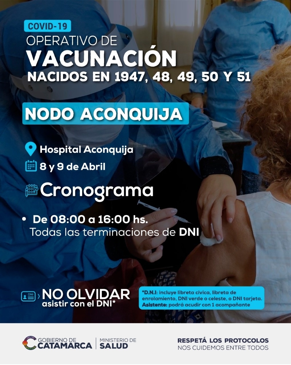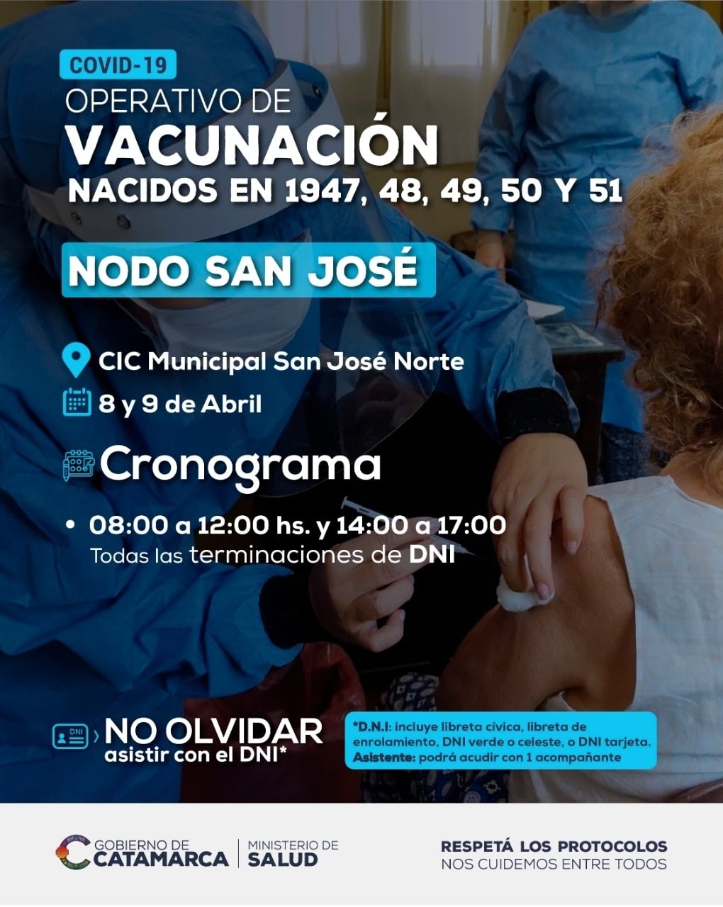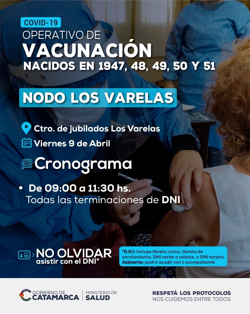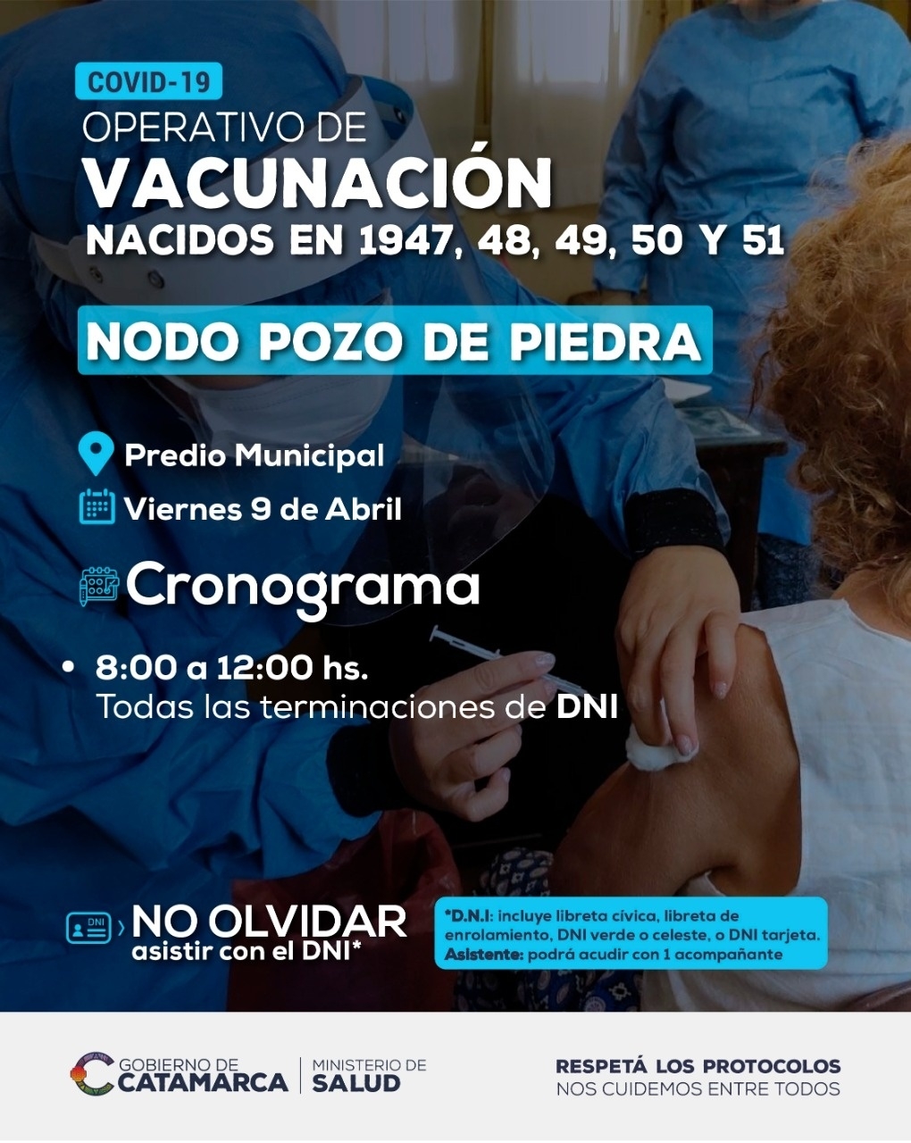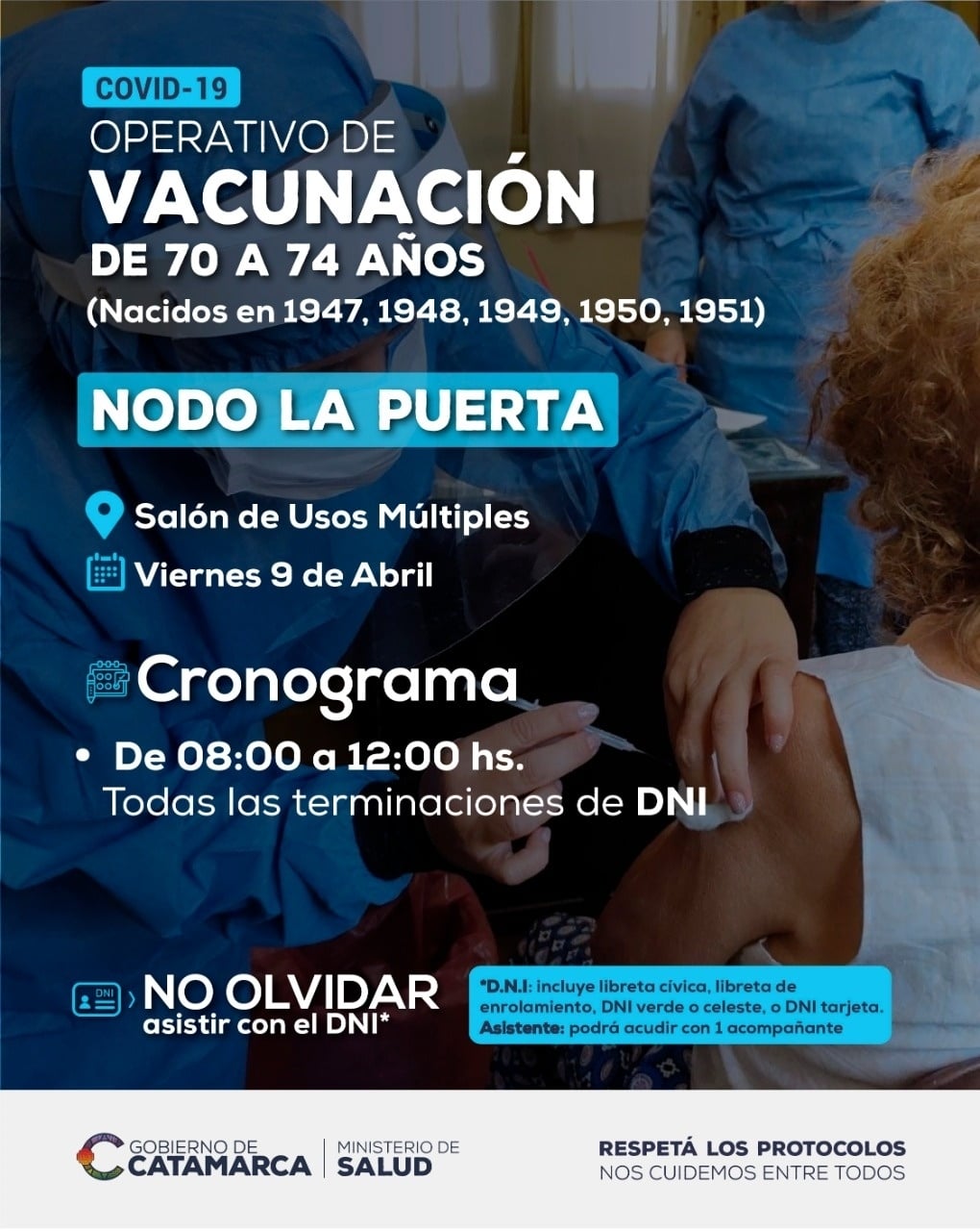 Además, en los diferentes Nodos del interior continúa la vacunación a personas que cumplieron o cumplen de 70 a 74 años, es decir, aquellos que nacieron entre 1947 y 1951.