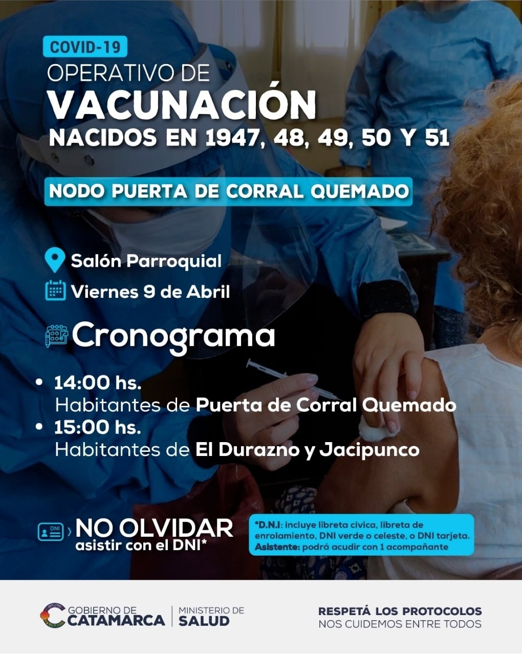 Viernes 9 de abril, a las 14 horas residentes de Puerta de Corral Quemado, y a las 15 horas residentes de El Durazno y Jacipunco, con todas las terminaciones de documento.