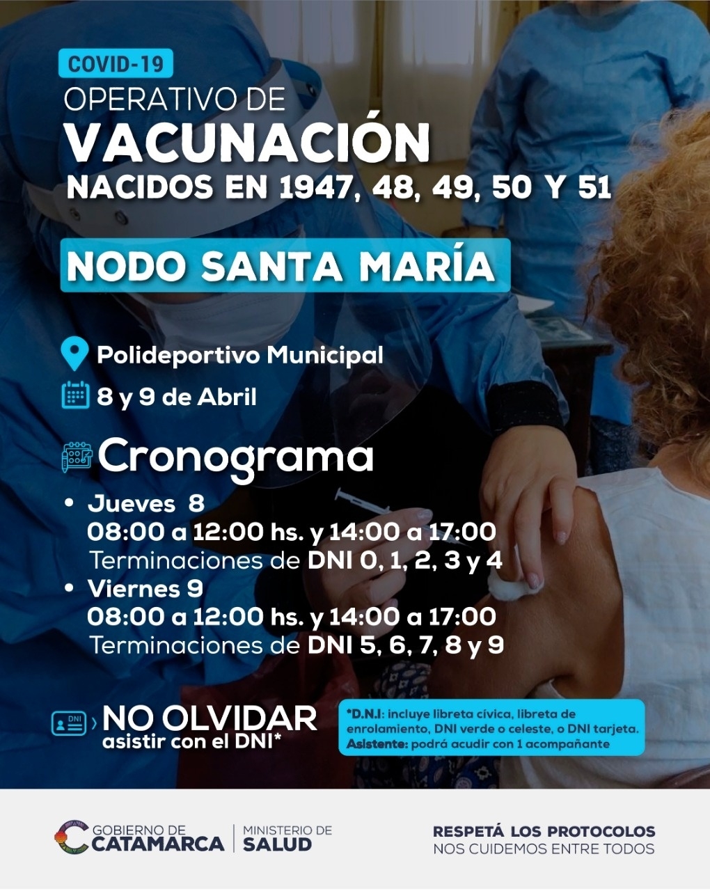 Continúa el día viernes 9 de abril, por la mañana (de 08 a 12 horas) y por la tarde (de 14 a 17 horas), personas con terminación de documento 5, 6, 7, 8, y 9.
