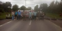 Se trata de un grupo de productores tabacaleros autoconvocados, quienes se manifiestan sobre Ruta Nacional 64, a la altura del kilómetro 156, en el acceso a la localidad de Los Altos, departamento Santa Rosa.