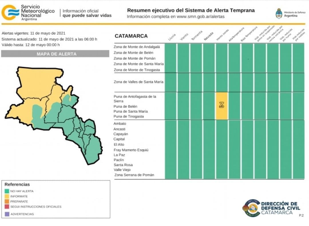 Por viento zonda para hoy martes 11, afectando las zonas de Puna de Tinogasta - Puna de Antofagasta de la Sierra - Puna de Belén - Puna de Santa María.