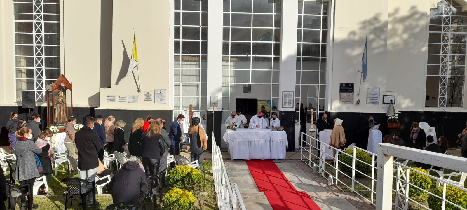 A las 9.00, cuando el sol asomaba en tierras chacareras, comenzó la Eucaristía, presidida por el Obispo Diocesano, Mons. Luis Urbanc, y concelebrada por el Vicario General y Presidente de la Comisión Central organizadora del Rito de Beatificación, Pbro. Julio Murúa; el párroco de San José, Pbro. Carlos Robledo, entre otros sacerdotes de los decanatos Capital y Centro.
