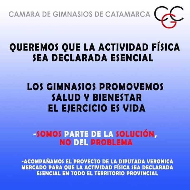 La Cámara de Gimnasios de Catamarca (CGC) emitió un documento donde advierten que, en caso de tener una respuesta negativa por parte de las autoridades, llevarán a cabo una manifestación y procederán a abrir los emprendimientos de manera compulsiva.