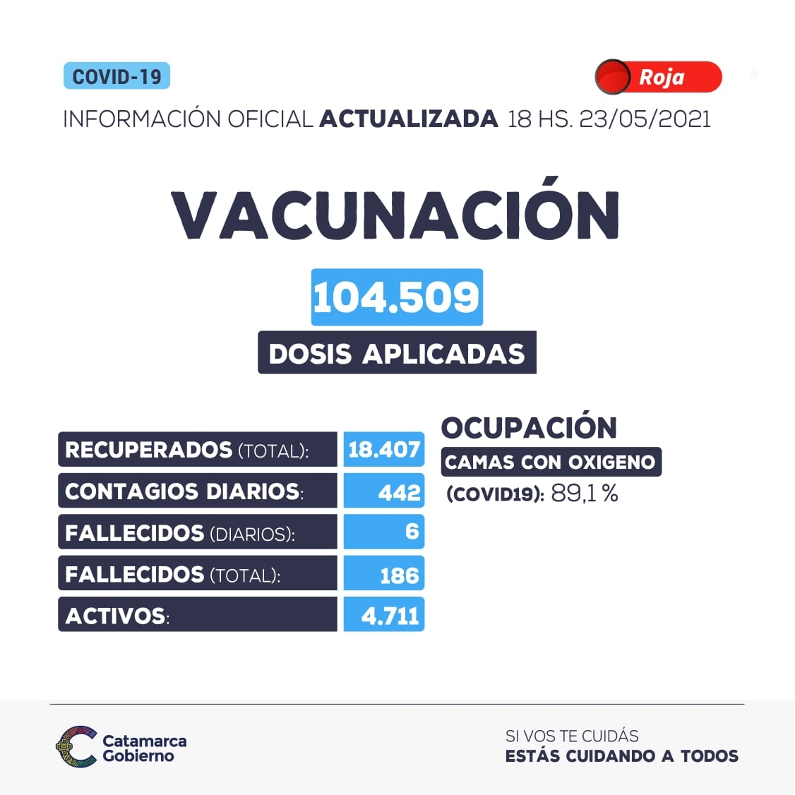 Hasta las 18 horas del domingo 23 de mayo se detectaron 442 nuevos casos positivos de coronavirus en la provincia de Catamarca. El total acumulado de casos positivos detectados asciende a 23.304.