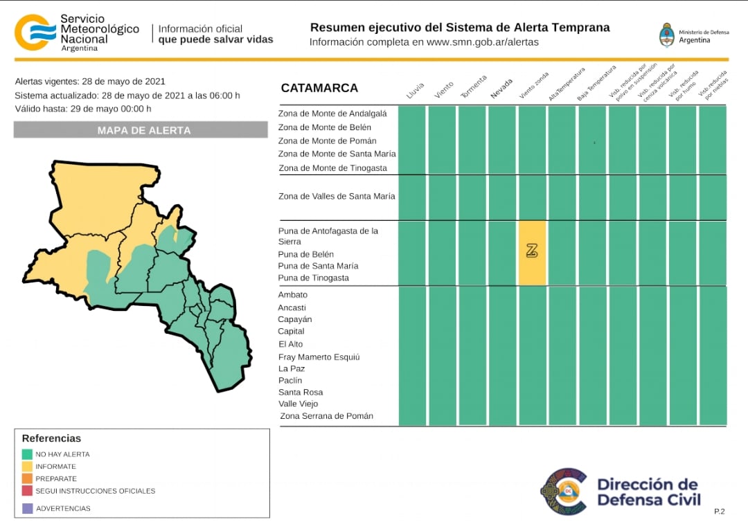 Alerta por viento zonda que rige para hoy viernes 28, afectando las zonas de Puna de Tinogasta - Puna de Antofagasta de la Sierra - Puna de Belén - Puna de Santa María.