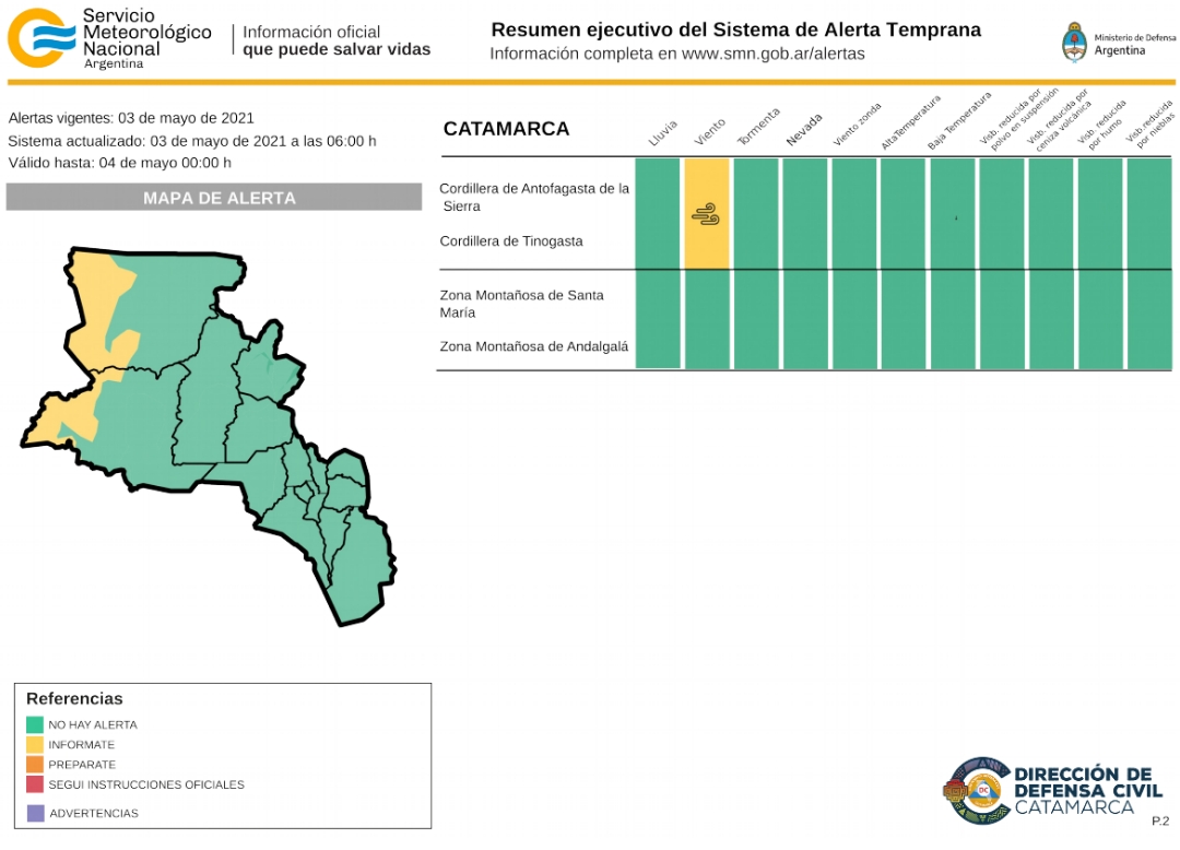 Los fuertes vientos afectarán las zonas de cordillera de Antofagasta de la Sierra y cordillera de Tinogasta.