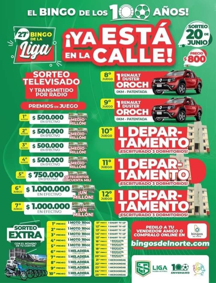Se informó que está prohibido en todo Catamarca la venta de cartones denominados Bingo de La Liga, proveniente de la vecina provincia de Salta, cuyo sorteó está previsto para el 20 de junio.