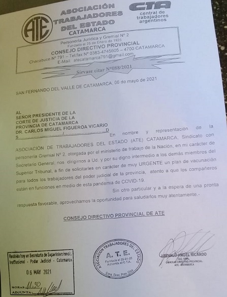 El pedido se debe a que los trabajadores son considerados esenciales y hasta el momento no fueron inoculados y se encuentran "prestando funciones en plena pandemia".
