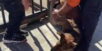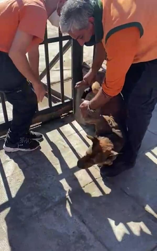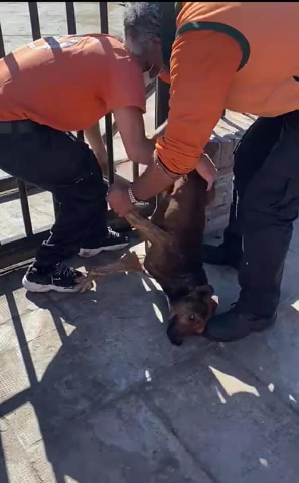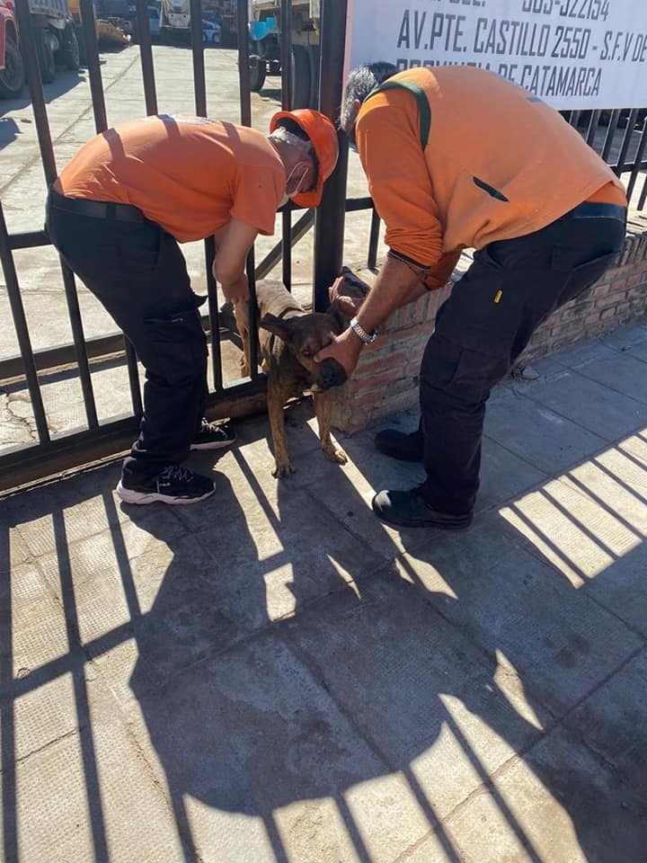 En inmediaciones a la parroquia San Roque, el personal interviniente logró rescatar un canino que se encontraba atrapado entre rejas de un domicilio particular.