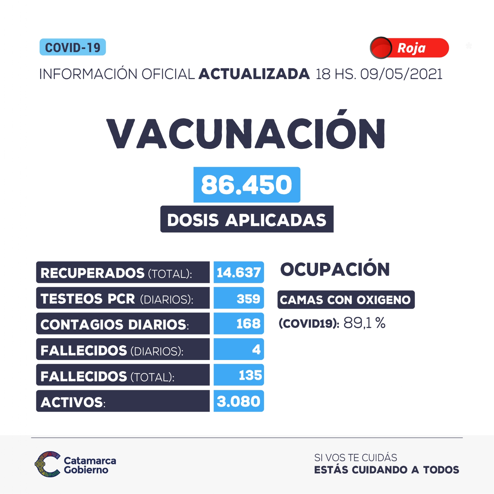 Hasta las 18 horas del domingo 9 de mayo se detectaron 168 nuevos casos positivos de coronavirus en la provincia de Catamarca. El total acumulado de casos positivos detectados asciende a 17.852.