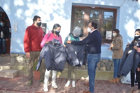 El intendente de Santa María, Juan Pablo Sánchez, junto al secretario General Prof. Antonio Camposano y la directora de Recursos Humanos, Verónica Santos, hicieron entrega al personal de una cuadrilla de obras públicas, taller municipal, bloquera; al área de Bromatología, a quienes además se les completó la entrega de calzado reglamentario; personal de cuidados de espacios públicos (plazas), serenos y al personal de Servicios Públicos, tanto barrenderos, barrenderas y recolectores de residuos.