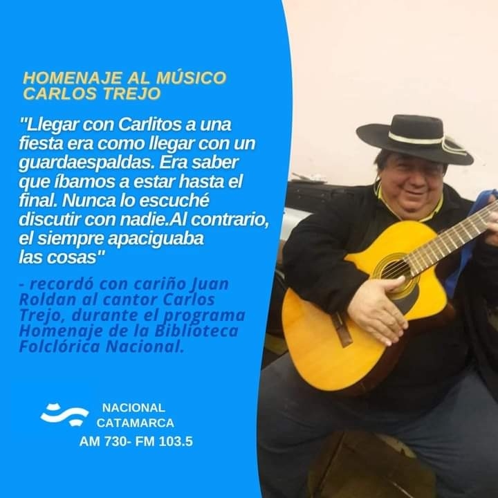 El Ministerio de Turismo y Cultura de la Provincia, el área de Cultura de la Municipalidad de San Fernando del Valle de Catamarca, y numerosos intérpretes del cancionero folclórico se manifestaron públicamente por las redes despidiendo al amigo: “La luchaste a más no poder, adiós querido Carlitos Trejo...”, rezaban los posteos multiplicados en interminables gestos de afecto hacia el cantor muerto y mensaje de condolencias para sus familiares.